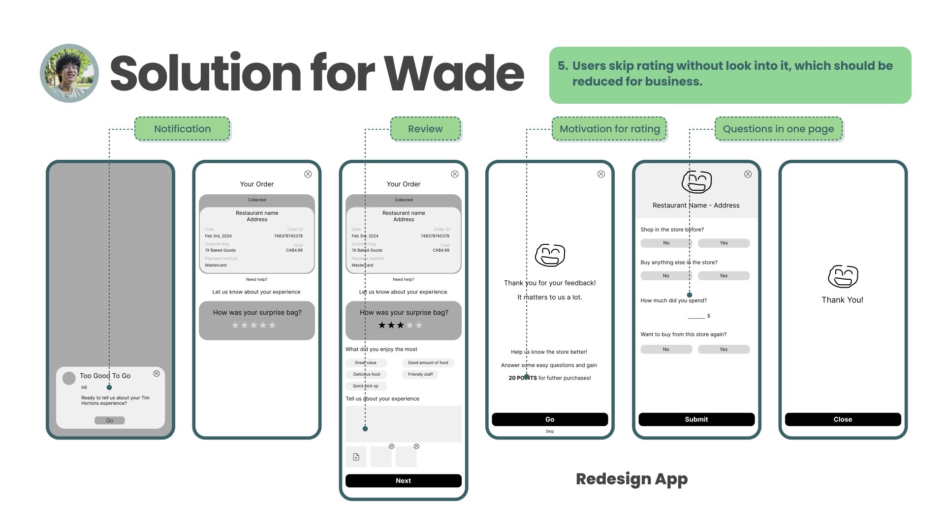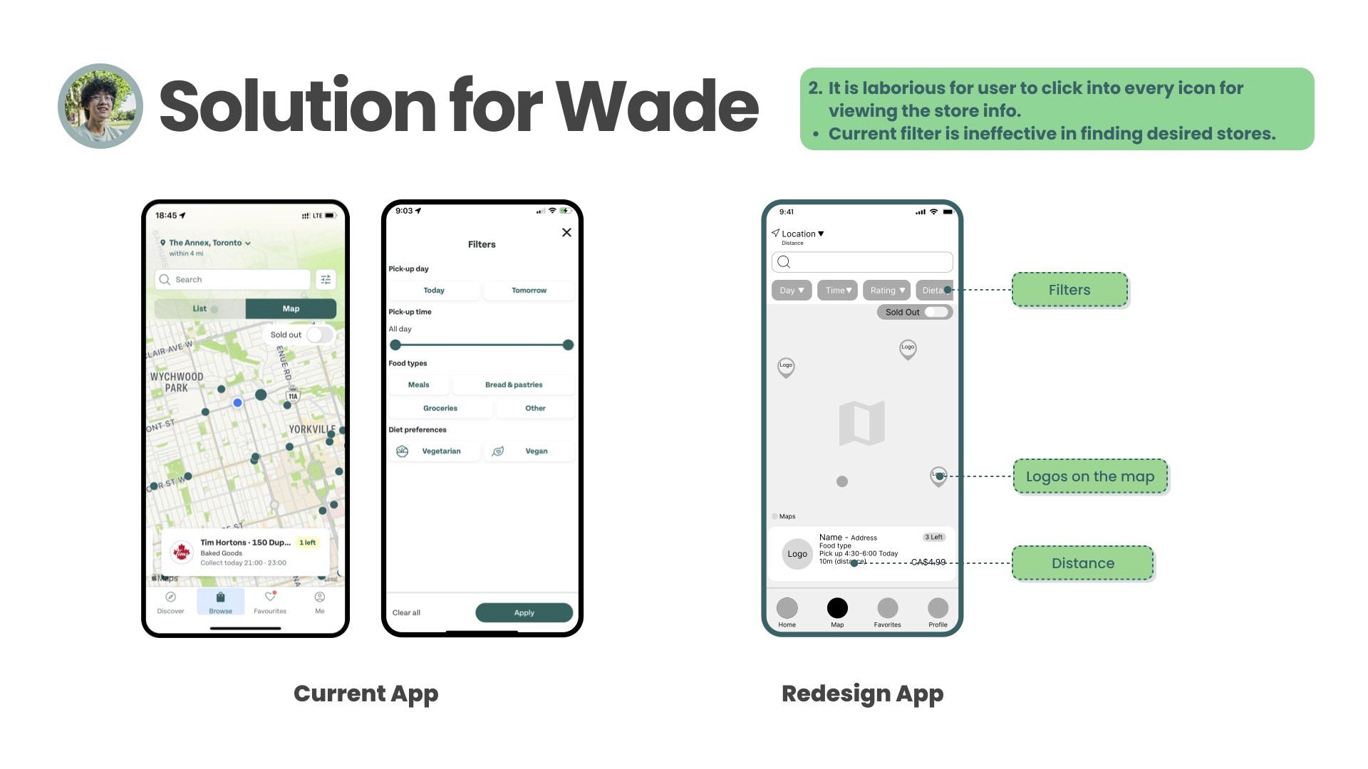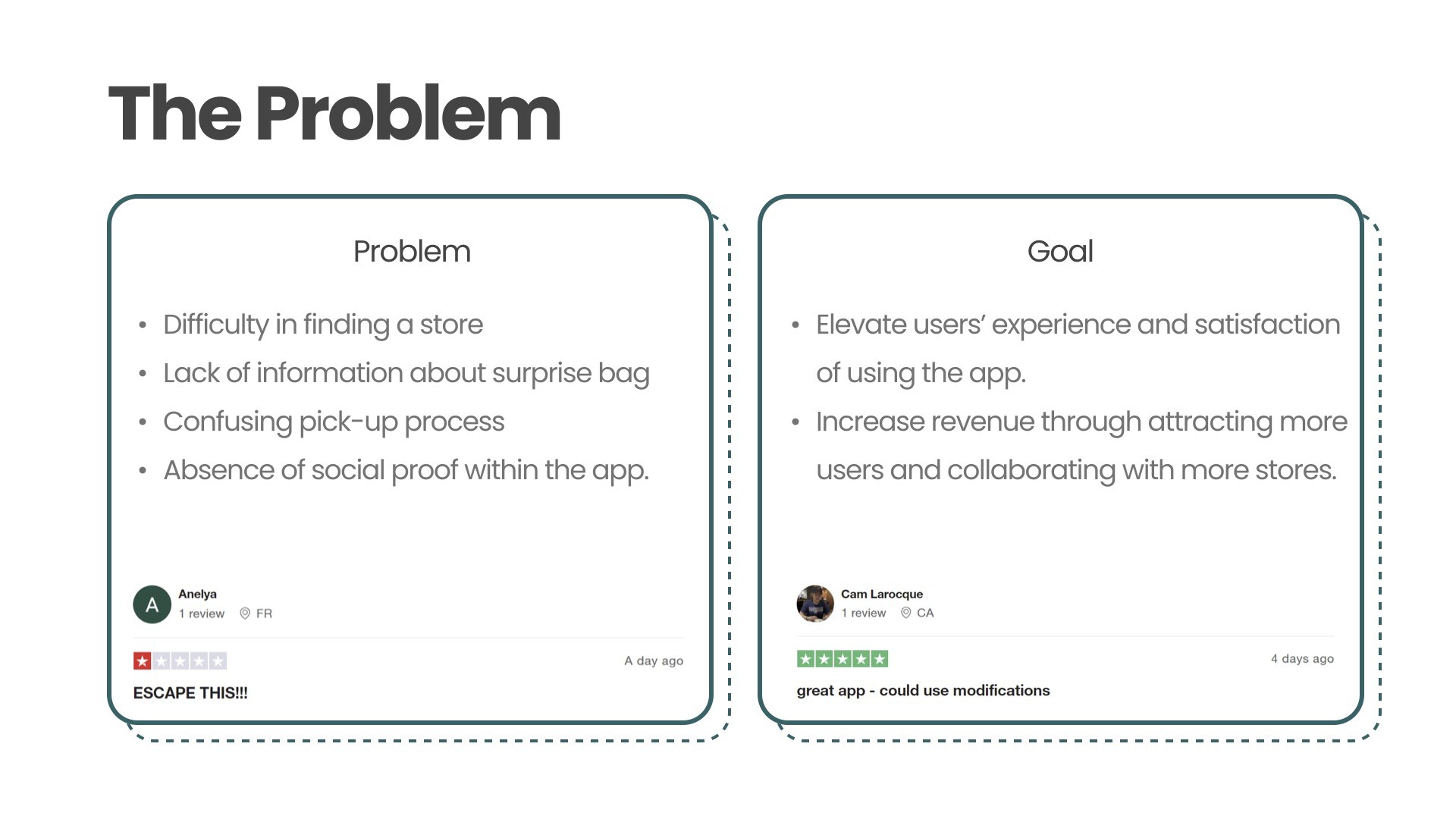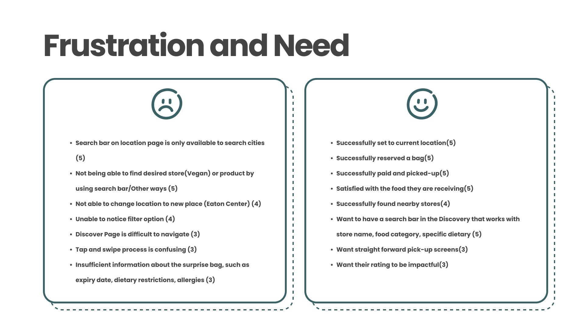 Survey: Gathered insights about demographics, motivations (saving money, fighting food waste), and friction points in the search and pick-up process.